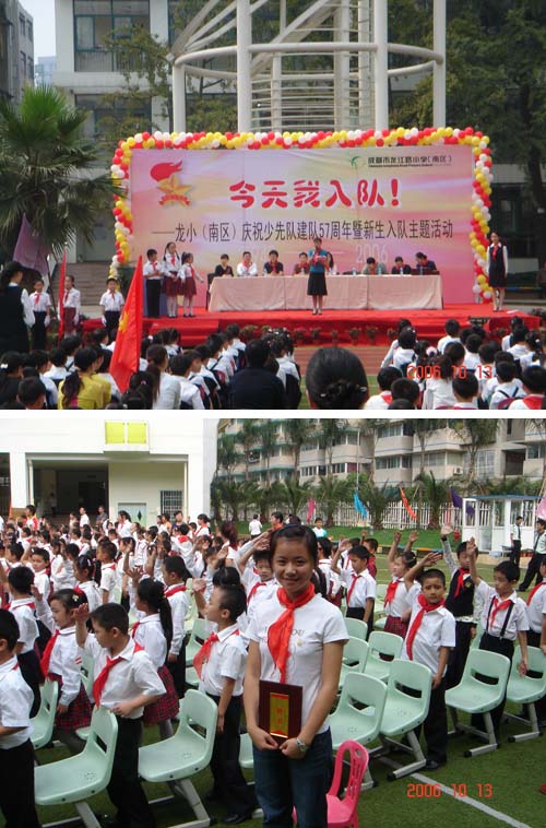 为搞好本次实践活动,音教系领导高度重视,积极部署,系办公室及时组织发动,最后在我系二、三年级选定了十五名优秀学生。系办老师还多次带领学生前往龙小,熟悉学校环境,与学校领导接洽,商量具体事宜。十月十三号当天,也是中国少年先锋队成立57周年的纪念日,音教系叶清兵老师、李林芸老师及参加本次实践活动的十五名学生共同参加了龙小当天的新生入队主题活动,少先队员们还为校外大队辅导员敬献红领巾,并由学校领导颁发聘书。在龙小学生的热情带领下,十五名校外辅导员来到自己所分配的班级,同小朋友们一起观看了集交通、医学、法律于一体的木偶剧《猎狗侦探》。