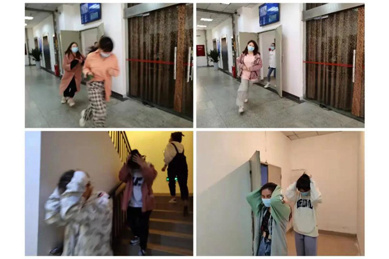 根据国务院应急办《突发事件应急演练指南》和学校应急避险预案,为了使广大师生掌握防震应急避险的正确方法和熟悉紧急疏散的路线和程序,保卫处结合实际,本着“以练代训、以练为战”的理念,于4月8、9日在武侯校区女生公寓,新都校区五教学楼、小音乐厅、学生宿舍等不同场所不同情形开展了防震减灾疏散演练。