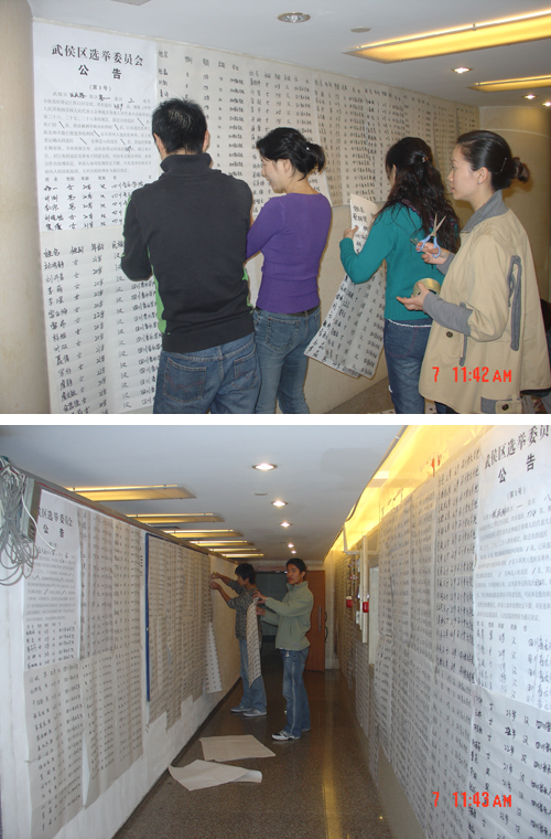 武侯区第五届人民代表大会换届选举正式拉开帷幕,选举工作将从2006年10月15日开始到12月5日结束。此次选举日定为11月28日。根据辖区人代会选举的划分,我院为致民路辖区第一选区。学院党委副书记彭建辉、文云英负责学院的选举工作,由院办牵头落实选举的具体事项。