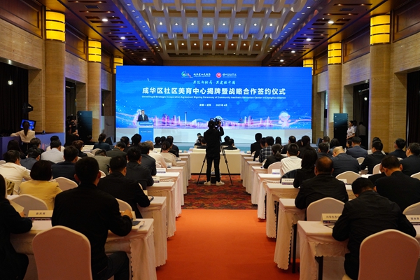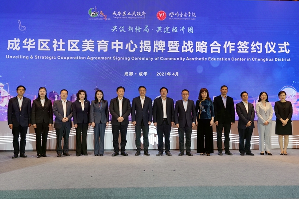 四川音乐学院与成华区共同打造成华区社区美育中心,是校地双方通过战略合作携手,采用校地合作的形式,在成华区11个街道通过“整体规划、分步实施”的方式,结合各街道、社区自身实际情况分别合作共建一所成华美育中心,学校将充分发挥自身优势,积极贡献艺术教育资源,设计优化美育课程,制定培训计划,定期选派专业优秀师资力量驻点开展美育教育,助力成华区加快产业转型高质量跨越式发展。