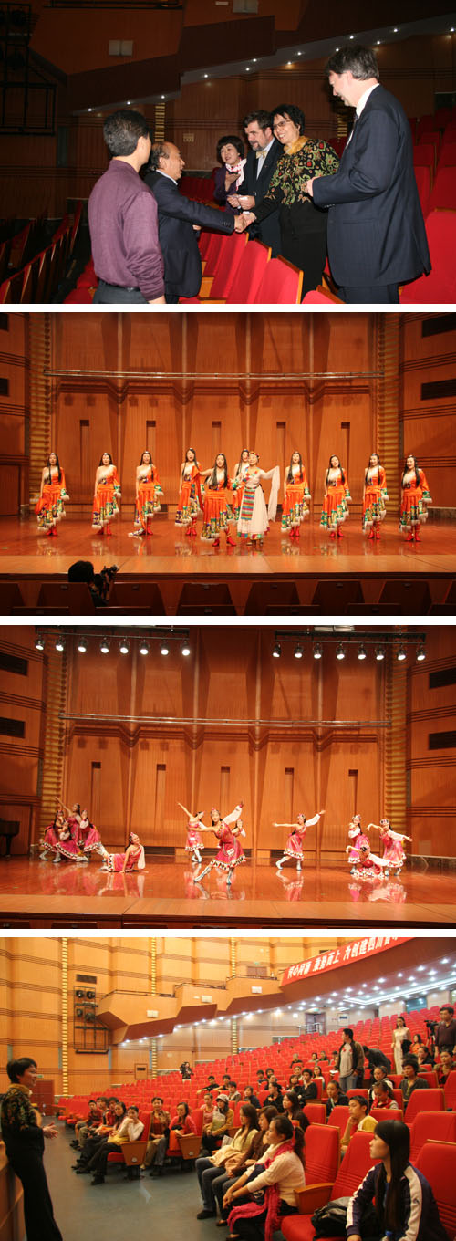 凯意礼先生一行在我院音乐厅观看了我院丽娟金蔷薇女子合唱团、舞蹈系及声乐系部分青年教师的精彩演出。