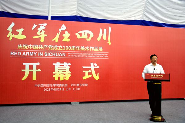 6月24日,红军在四川—庆祝中国共产党成立100周年美术作品展在四川音乐学院新都校区隆重开幕,党委书记周思源,党委副书记、院长刘立云,党委副书记侯钫,省纪委监委驻川音纪检监察组组长、校党委副书记、纪委书记魏文彪,党委常委、副院长文云英、孙洪斌、牟文虎、文锋、王雁,党委常委雍敦全、胡咏梅、刘芸秀,以及四川大学、西南石油大学、西南民族大学、西华大学、西华师范大学、成都大学、四川艺术职业学院、四川华新现代职业学院、新都区委、区政府及相关企业、街道负责人参加开幕式。开幕式由牟文虎主持。