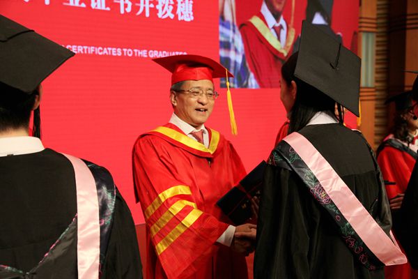 刘立云致毕业寄语,他代表全体教职员工向即将踏上人生新旅程的同学们表示了热烈的祝贺。同时向为同学们的成长成才倾注了心血汗水的老师们致以崇高的敬意,也向各位默默辛勤付出的家长们道贺!他表示,大学毕业是人生历程的重要里程碑。在这激动人心的时刻,国家、社会、家庭对你们都有很高的期待。毕业并不意味着学习的终结和人格完善的终止,同学们将在实践中深化认知,健全人格。事实证明,正视社会情感和精神追求,终生学习的能力、勇于创新的精神成为必然的选择。希望同学们坚信自身的价值,守住精神的高地,找到热爱的事业,保持人性的温度,在人生中赢得主动、赢得未来。临别之际,刘立云送给所有毕业生六句话。一是要有家国天下的情怀这样一种社会责任感。有了这样的情怀和社会责任感,个人的发展就获得了不竭动力。二是要有不负此生的志向,无论做什么,希望自己无愧于心,不负此生。三是要有舍我其谁的担当,要以时不我待的紧迫感、舍我其谁的责任感,主动担当,积极作为,刻苦钻研,勤奋工作,四是要有坚守善良的本心,坚持自己的原则、立场、操守、本心等等,不能因外在环境的不利而改变甚至放弃。五是要有学无止境的追求,学习是人生永恒的一道风景,伴随着人的诞生而产生,随着人的成长而深化,踏着人生前进的脚步而升华,它是同学们人生中不可或缺的一件法宝,六是要有诚信待人的坚持,生活中与人相处,贵在舒服,与人相知,贵在知心,与人相交,贵在诚信,这也是同学们踏上社会安身立命的根本所在。最后希望同学们以大学毕业为人生新的起点,努力“立德、立功、立言”,把平凡的事情做好,在平凡中铸就非凡,在平凡中成就事业。