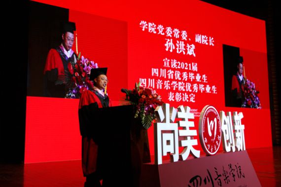 典礼中,侯钫、孙洪斌宣读了2021届四川省优秀毕业生和四川音乐学院优秀毕业生表彰决定。随后,校领导为优秀毕业生代表颁发了凯发旗舰厅的荣誉证书。