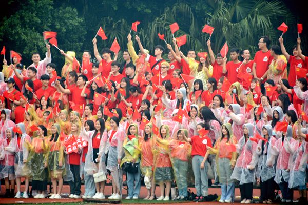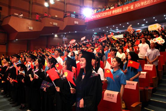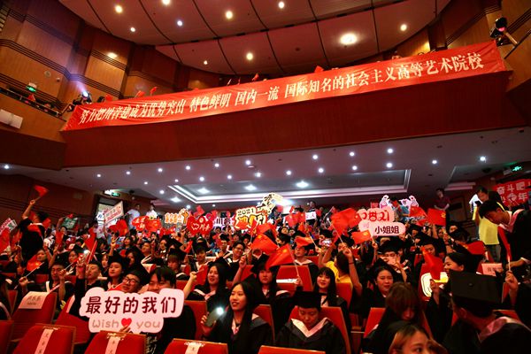 典礼现场气氛热烈而庄重,全体师生齐唱《没有共产党就没有新中国》,现场师生挥舞着国旗,欢呼声、掌声不断。本次毕业典礼突出了思想教育主题,这是四川音乐学院本科毕业生在校期间最后一堂思政课,借着这次典礼,毕业学子在受到教育的同时进而明白了奋斗的青春,最美丽!