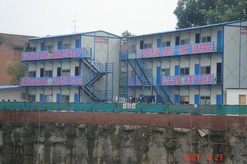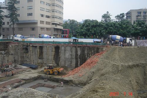 针对教工代表提出的两幢塔楼分阶段施工,是否会造成过大的不均匀沉降,影响建筑物的质量。选择两幢塔楼分阶段施工,是因为施工场地过于狭窄,无钢筋堆放、加工制作场地造成的。在这里可以肯定的答复大家不会,这种方法施工,从技术上讲完全是可行的,因为两幢塔楼的筏板基础之间设有后浇带,两幢塔楼各为独立的单元,从基础到屋顶全部构件是断开的,可以垂直自由沉降,不会出现大家担心的问题。