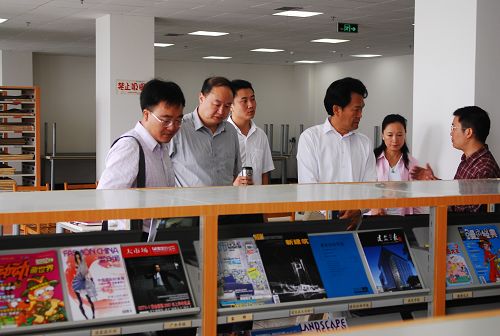 随后,领导一行来到了图书馆,对各类书籍上架情况、电子阅览室、书籍管理等进行了详尽检查。提出要充分利用图书馆空闲场地,为师生营造良好的学习、阅览环境。目前图书馆40万册图书已完成上架,综合图书阅览室、专业图书阅览室、电子阅览室等已接待师生六万人次。
