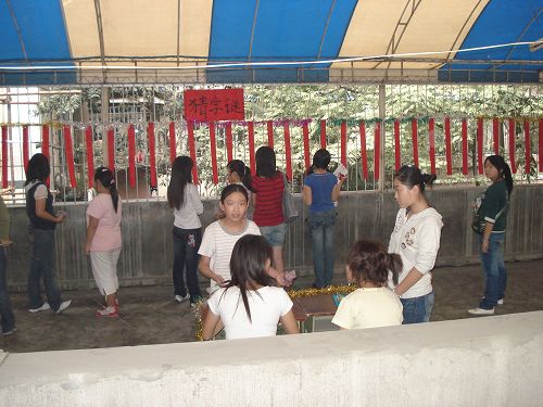 在张灯结彩的活动室里挂满了“灯谜”,学生们踊跃竞猜;红红的烛光吸引了许多同学们玩“吹蜡烛”的热情;五颜六色的气球伴着他们的欢笑声被踩爆••••••