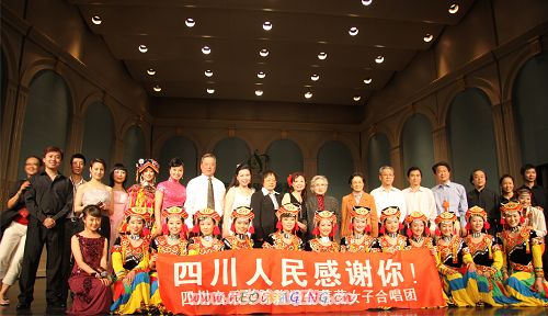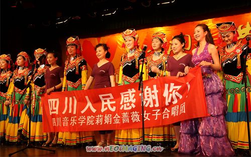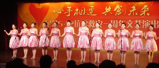 四川音乐学院莉娟金蔷薇女子合唱团,在灾难面前表现出强烈的社会责任感和无畏的英雄气概,用歌声展示了我们中华民族的坚韧不屈、心手相牵,表达了民族的希望和信心。合唱团的精彩演出在上海引起了极大反响,得到了上海各界人士的高度评价和赞扬。