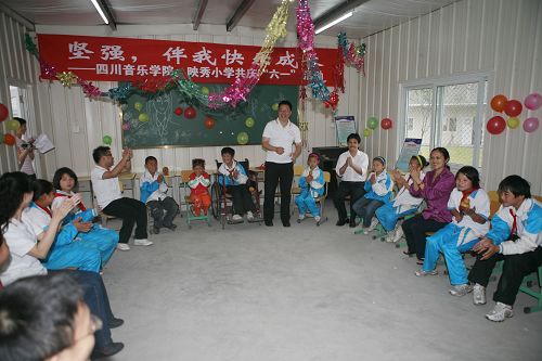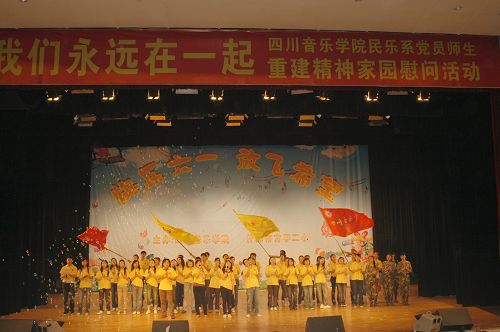 演出结束后,民乐系决定把什邡方亭二小作为四川音乐学院民乐系的教学和实践基地,安排党员师生进行辅导,实实在在的为灾区精神家园的建设作贡献。