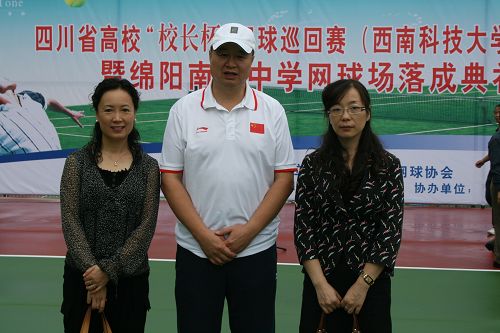 2009年9月19日,为期两天的由四川省高校网球协会主办,西南科技大学承办的“校长杯”网球巡回赛在西南科技大学隆重举行。来自全省17所高校的42名校长云集于此,比赛在隆重而热烈的氛围中落下帷幕。由我院工会组建的参赛队伍取得如下名次。我院党委副书记彭建辉获得厅级男子甲组第七名;我院组织部部长陈熹、院办主任宋瑛联袂组合的女双获得处级女子组第一名的好成绩。特此向此次参赛的获奖选手表示祝贺。