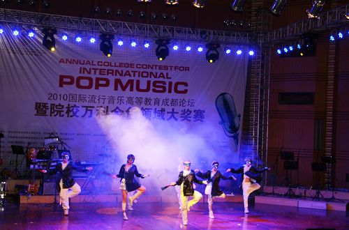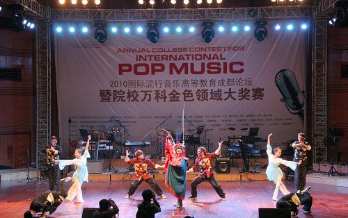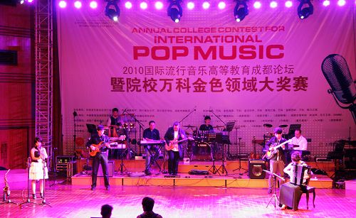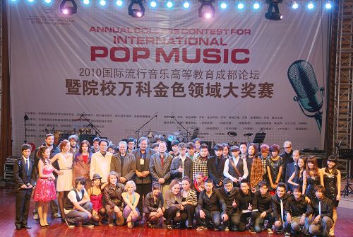 2010年10月26日、27日晚,2010国际流行音乐教育成都论坛暨国际流行音乐院校万科金色领域大奖赛院校歌手比赛及原创歌曲大赛决赛分别在我院大音乐厅隆重举行。参加此次论坛的来自国内外高等院校的嘉宾及我院师生聆听了音乐会。担任本次大赛的评委有:名誉主席、中国音乐家协会主席赵季平,主席、四川省文联副主席、四川音乐家协会主席、原四川音乐学院院长敖昌群教授,著名词曲作家、中国音乐家协会流行音乐学会常务副主席付林,中国音乐家协会流行音乐学会秘书长金兆钧,著名音乐人黑楠、三宝、刘舟,德国巴登符腾堡州流行音乐学院院长udo dahman,匈牙利流行音乐学院院长póka egon 。选手们在比赛中充分展示,倾情演绎,展示了高超的艺术水准,赢得了在场观众的热烈掌声。