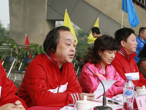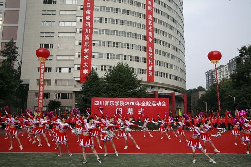 院长易柯教授致开幕词,他要求全体运动员要发扬伟大的抗震救灾精神和振奋人心的川音精神,勇于拼搏,积极进取,全面展示川音教职工和当代大学生朝气蓬勃的精神风貌,赛出风格,赛出水平,赛出精神面貌,为努力营造和谐向上校园,为早日建成四川艺术大学不懈努力。