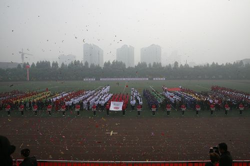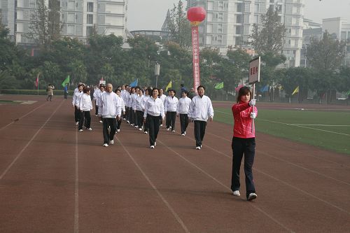运动员方队在激越的进行曲中入场,国旗队、会旗队,党政共团教工代表队斗志昂扬,人们欣喜的发现,此次教工方队里出现了所有的学院领导,易院长带队,院领导们精神抖擞、意气风发;离退休方队,研究生方队精神振奋,充分展示了老同志的风采和精神风貌。28个方队精神饱满地走过主席台,观众席上响起了一次又一次热烈的掌声。