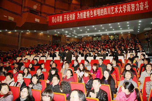 面对朝气蓬勃、充满活力的青年学子,甘道明书记深情报告开始。他特别表示,非常高兴来到历史悠久的音乐艺术殿堂——四川音乐学院,并与广大师生一起畅谈青春理想,人生成长,展望美好明天,创造精彩人生。他就当代青年“胸怀理想信念,争做时代英才”这一主题,从三个方面为全校师生作了 精彩的演讲。一是胸怀理想抱负、放飞青春梦想。二是勇于面对现实、开创人生未来。三是为祖国而成才、为理想而奋斗 。他希望当代大学生要全面地发展自己,做一个又理想、有能力、有个性的人,更要做一个有素质、有修养、讲孝道、懂感恩、有品位的人,不断提高做人的境界、不断增长才学、不断积蓄力量,坚持执着的追求,就一定能到达理想的彼岸。报告既富有深刻的哲理和思想火花,又有甘书记自身成长的切身体会和深切感悟;既有对所处时代、国际国内形势和四川经济社会文化发展形势的深入剖析,又有对当代青年面临的历史机遇和时代挑战,青年学生如何树立远大理想、抓住时代机遇,坚持全面发展,努力奋发成才的深入浅出的深刻阐述。报告内涵丰富,思想深刻,循循善诱,生动感人,催人奋进,使全校师生受到了一次生动的思想教育,形势教育,理想信念教育。