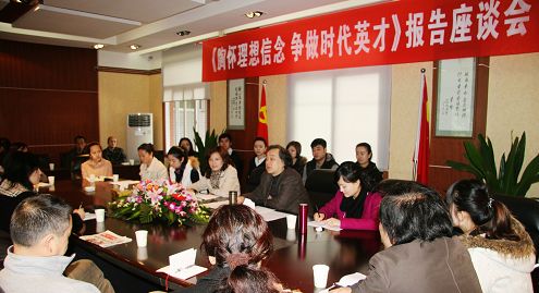 座谈会上,文书记首先谈到,甘道明同志励志报告是一次难得的高水平的形势报告会,是一次精彩的热点讲座,也是我院开展的一次生动的形势教育课。报告既富有深刻的哲理和思想火花,又有甘书记自身成长的切身体会和深切感悟;既有对所处时代、国际国内形势和四川经济社会文化发展形势的深入剖析,又有对当代青年面临的历史机遇和时代挑战,青年学生如何树立远大理想、抓住时代机遇,坚持全面发展,努力奋发成才的深入浅出的深刻阐述。 今天我们召开座谈会的目的就是要进一步认真领会和践行甘书记的重要报告精神,谈心得、讲收获,胸怀理想信念,争做时代英才。