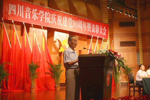 优秀共产党员代表毕兴教授发言。他说,作为一名在四川音乐学院默默工作、辛勤耕耘的82岁老党员,在这个特殊的日子里,感慨万千。经历了“侵略”、“压迫”、“亡国奴”,经历了“专制独裁”、“民不聊生”,一路寻求尊严、一路争取解放,因为有了共产党,我看到了新的希望。我决心跟党走,几十年来,党把我从一个普通的中学生培养成一位革命军人。从一个军人又成为人大学子。我深深体会到,没有共产党就没有新中国。是毛主席领导我们站起来,是邓小平领导我们走进新时代,我们要懂得感恩、懂得珍惜。看到国家越来越繁荣富强,看到学院日新月异的变化,我为我还能为学院做一点小事而感到开心和自豪。我愿为学院的花木浇水培土、为学院的大楼添砖加瓦。在庆祝建党90周年之际,我与一些老同志参加唱响心中的歌。为学院又好又快发展,早日建成艺术大学高歌。我愿为党高歌,为社会主义事业高歌。