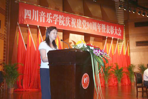 先进党组织代表钢琴系党总支书记王雁教授发言。她满怀激情地说,在这个举国欢庆的日子里,回忆90年来中国所发生的翻天覆地的巨变,在红歌声中、在创先争优活动中,我们真实的感受到党的辉煌历程,没有中国共产党的正确领导,就没有今天中国的繁荣富强。国家的强盛,带来了科技的进步和教育的发展。四川音乐学院也迎来了历史上最辉煌的今天。作为川音的基层党务工作者,我们要重视党员师生教育,树立远大理想,创造性地开展党建工作,加强理论学习,提高对党的认识,将政治思想工作与学术研究、创作表演、科学管理很好的结合起来,充分发挥党组织的政治核心作用,为实现“为祖国歌唱,为社会贡献,建艺术高地,走时代前列”,做出自己应有的贡献。
