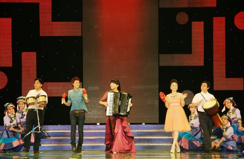 乐器版《喜洋洋》,手风琴、马林巴、钢琴与各类打击乐一道更显喜气洋洋,无不展示着我院师生阳光快乐、积极向上的精神风貌。钢琴演奏者是我院毕业生、曾获国际钢琴届顶级比赛的波兰第十四届肖邦国际钢琴大赛大奖的陈萨;手风琴表演者是我院2011届应届手风琴硕士毕业生、在联合国教科文组织国际音乐理事会所属国际手风琴联盟主办的第62届“世界杯”国际手风琴比赛上获国际键盘组第一名的贺倩;马林巴演奏者是我院2011届应届本科毕业生、曾获第三届全国打击乐比赛专业组最佳新人组合奖金奖、第四届全国打击乐比赛专业重奏组第二名的赵婷、赵婧;帮戈演奏者是我院党委委员,宣传(统战)部长,川音绵阳艺术学院院长雍敦全教授;非洲鼓演奏者是我院团委书记李天昊;沙锤演奏者是我院毕业生、曾获2006超级女声全国第二名的谭维维;铃鼓演奏者是我院艺术硕士毕业生、曾获获第十三届cctv青年歌手大奖赛四川赛区流行组金奖的王利。一曲热情欢快的《喜洋洋》让全场观众激情如潮,不由跟着哼唱,演员们倾情投入的表演获得了热烈掌声。