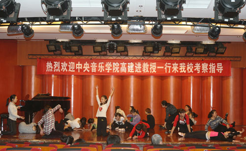学院音乐教育系主任安冰冰教授就该项目的研究进展做了详细汇报。该项目的目标是深入学习、掌握达尔克罗兹、奥尔夫、科达伊三大先进音乐教育体系;融入本土艺术资源;培训全省全市师资力量。该项目已在全省全市的大、中、小学以及幼儿园里建立了“新体系”基地。 “新体系”课本教材、多媒体教材的编写和研究还在按计划工作。