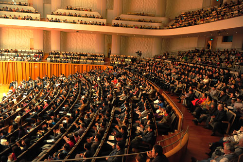 在90分钟的演出中,每结束一次观众都抱以热烈的掌声。特别是节目结束后,观众久久不愿离去,以雷鸣般的掌声示意再次返台,乐团不得不重新两次返台奏响《赛马》和《花好月圆》。充分显示了我院民族交响乐团的高超水平,独奏独唱师生的水平和民族文化的感染力。一位来自部队的首长评价:“节目太精彩,师生太投入,四川文化太深厚。”