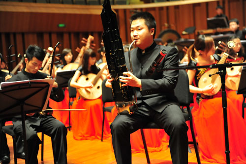 音乐会在四川音乐学院民乐系研究生晏景晟演奏的《第一键笙狂想曲》(邵春良曲)中拉开序幕,这首以奏鸣曲式结构写成,体现了作曲家热情奔放的情感,在音乐形象上对比鲜明、感情强烈,键笙与乐队的对话,使音乐变得激情四射。