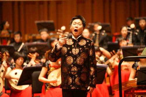 第八届“大红鹰”杯全国青年歌手电视大奖赛民族唱法专业组第二名、第四届中国音乐《金钟奖》全国声乐比赛银奖获得者,我院声乐系副主任谭学胜演唱《再见了,大别山》、《船工号子》。《船工号子》是我院首任院长常苏民所作,音乐材料单一,为上下句结构。奏急促,短领短和,呼应紧凑,呼喊性音调。富有抒情气质,曲调装饰音较多。