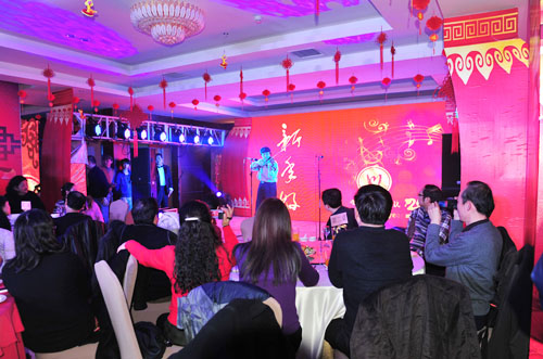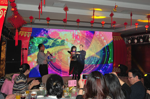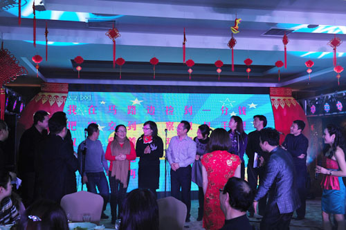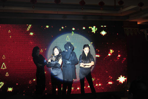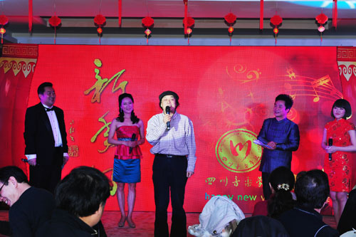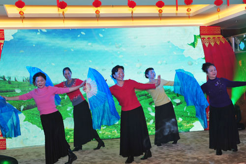 离退休老师们争先恐后的表演祝贺节目,刘吉华、桂春明表演民乐二重奏《春江花月夜》、87岁兰幼青老教授表演独唱《唱支山歌给党听》、喻璞、何佳、孙守珍、曹敏、裘小蓉表演舞蹈《孔雀东南飞》。97岁的老教师陈光新面对崭新的大美川音好形势用真情的三个字说“很幸福”!退休老教师李汲渊说“谢谢领导关心,祝愿大家新年快乐”,退休老教师李苇说“感谢学院领导和各位专家,祝福大家新年好!”退休老教师姜仪宽说“愿好运伴随着每一个人!”。由钢琴系青年教师们带来的《时装秀》,基础部的教师们带来《太极舞》以及各位青年歌唱家带来的《聚会圆舞曲》更是将整场团拜会的热烈气氛推向高潮。院领导们还为幸运抽奖的教职员工送上亲选的礼品,并写上良好祝愿。